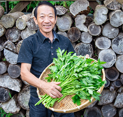 アシタバは種まきから収穫まで2年ほどかかりますが、西野農園では農薬を使用せずに育てます。